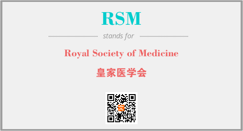 上述内容是“Royal Society of Medicine”作为“RSM”的缩写,解释为“皇家医学会”时的信息,以及英文缩略词RSM所代表的英文单词,其对应的中文拼音、详细解释以及在英文中的流行度和相关分类、应用领域及应用示例等。