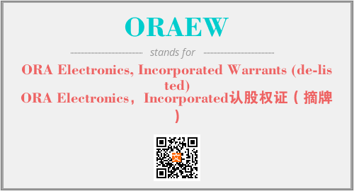 以上为ORA Electronics, Incorporated Warrants (de-listed)英文缩略词ORAEW的中文解释,以及该英文缩写在英语的流行度、分类和应用领域方面的信息。