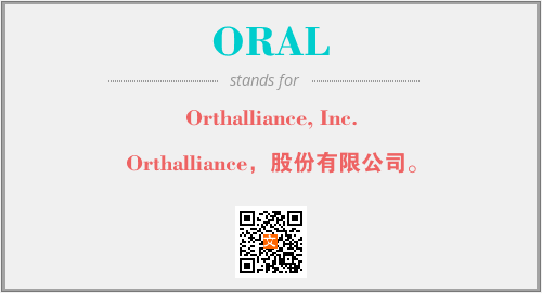 上述内容是“Orthalliance, Inc.”作为“ORAL”的缩写,解释为“Orthalliance,股份有限公司。”时的信息,以及英文缩略词ORAL所代表的英文单词,其对应的中文拼音、详细解释以及在英文中的流行度和相关分类、应用领域及应用示例等。
