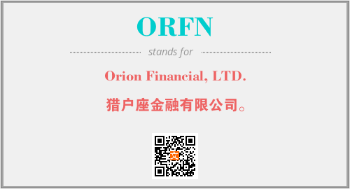 上述内容是“Orion Financial, LTD.”作为“ORFN”的缩写,解释为“猎户座金融有限公司。”时的信息,以及英文缩略词ORFN所代表的英文单词,其对应的中文拼音、详细解释以及在英文中的流行度和相关分类、应用领域及应用示例等。
