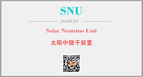 上述内容是“Solar Neutrino Unit”作为“SNU”的缩写,解释为“太阳中微子装置”时的信息,以及英文缩略词SNU所代表的英文单词,其对应的中文拼音、详细解释以及在英文中的流行度和相关分类、应用领域及应用示例等。