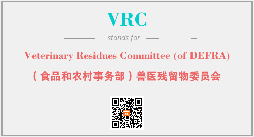上述内容是“Veterinary Residues Committee (of DEFRA)”作为“VRC”的缩写,解释为“(食品和农村事务部)兽医残留物委员会”时的信息,以及英文缩略词VRC所代表的英文单词,其对应的中文拼音、详细解释以及在英文中的流行度和相关分类、应用领域及应用示例等。