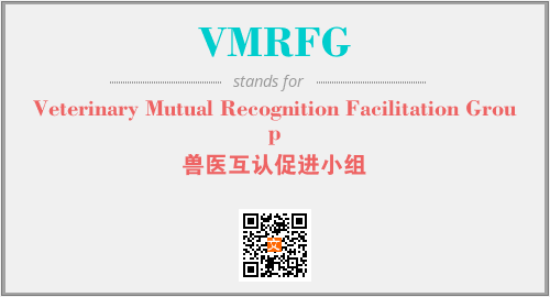 上述内容是“Veterinary Mutual Recognition Facilitation Group”作为“VMRFG”的缩写,解释为“兽医互认促进小组”时的信息,以及英文缩略词VMRFG所代表的英文单词,其对应的中文拼音、详细解释以及在英文中的流行度和相关分类、应用领域及应用示例等。