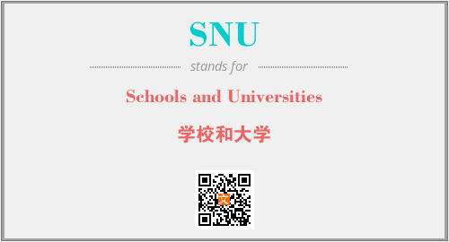 上述内容是“Schools and Universities”作为“SNU”的缩写,解释为“学校和大学”时的信息,以及英文缩略词SNU所代表的英文单词,其对应的中文拼音、详细解释以及在英文中的流行度和相关分类、应用领域及应用示例等。