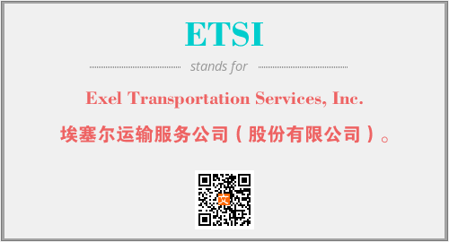 上述内容是“Exel Transportation Services, Inc.”作为“ETSI”的缩写,解释为“埃塞尔运输服务公司(股份有限公司)。”时的信息,以及英文缩略词ETSI所代表的英文单词,其对应的中文拼音、详细解释以及在英文中的流行度和相关分类、应用领域及应用示例等。