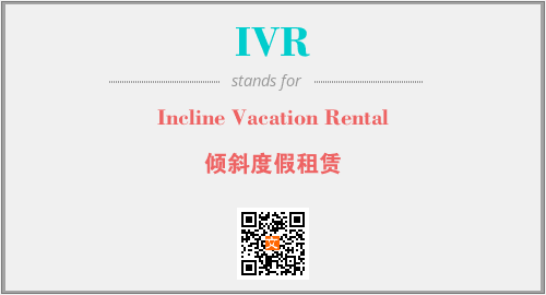 上述内容是“Incline Vacation Rental”作为“IVR”的缩写,解释为“倾斜度假租赁”时的信息,以及英文缩略词IVR所代表的英文单词,其对应的中文拼音、详细解释以及在英文中的流行度和相关分类、应用领域及应用示例等。