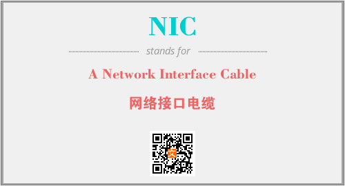 上述内容是“A Network Interface Cable”作为“NIC”的缩写,解释为“网络接口电缆”时的信息,以及英文缩略词NIC所代表的英文单词,其对应的中文拼音、详细解释以及在英文中的流行度和相关分类、应用领域及应用示例等。