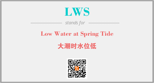 英文缩略词“LWS”经常作为“Low Water at Spring Tide”的英文缩写来使用,中文表示:“大潮时水位低”。本文将详细介绍英文缩写词LWS所代表英文单词,其对应的中文拼音、详细解释以及在英语中的流行度。此外,还有关于缩略词LWS的分类、应用领域及相关应用示例等。