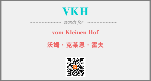 上述内容是“vom Kleinen Hof”作为“VKH”的缩写,解释为“沃姆·克莱恩·霍夫”时的信息,以及英文缩略词VKH所代表的英文单词,其对应的中文拼音、详细解释以及在英文中的流行度和相关分类、应用领域及应用示例等。
