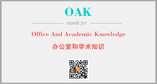 上述内容是“Office And Academic Knowledge”作为“OAK”的缩写,解释为“办公室和学术知识”时的信息,以及英文缩略词OAK所代表的英文单词,其对应的中文拼音、详细解释以及在英文中的流行度和相关分类、应用领域及应用示例等。