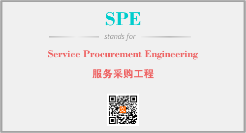 英文缩略词“SPE”经常作为“Service Procurement Engineering”的英文缩写来使用,中文表示:“服务采购工程”。本文将详细介绍英文缩写词SPE所代表英文单词,其对应的中文拼音、详细解释以及在英语中的流行度。此外,还有关于缩略词SPE的分类、应用领域及相关应用示例等。