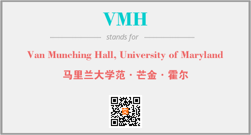 英文缩略词“VMH”经常作为“Van Munching Hall, University of Maryland”的英文缩写来使用,中文表示:“马里兰大学范·芒金·霍尔”。本文将详细介绍英文缩写词VMH所代表英文单词,其对应的中文拼音、详细解释以及在英语中的流行度。此外,还有关于缩略词VMH的分类、应用领域及相关应用示例等。