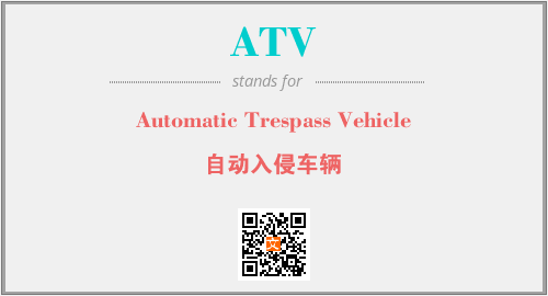 英文缩略词“ATV”经常作为“Automatic Trespass Vehicle”的英文缩写来使用,中文表示:“自动入侵车辆”。本文将详细介绍英文缩写词ATV所代表英文单词,其对应的中文拼音、详细解释以及在英语中的流行度。此外,还有关于缩略词ATV的分类、应用领域及相关应用示例等。
