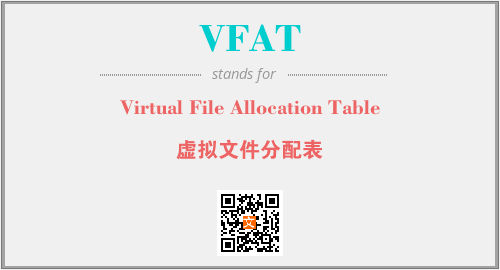 英文缩略词“VFAT”经常作为“Virtual File Allocation Table”的英文缩写来使用,中文表示:“虚拟文件分配表”。本文将详细介绍英文缩写词VFAT所代表英文单词,其对应的中文拼音、详细解释以及在英语中的流行度。此外,还有关于缩略词VFAT的分类、应用领域及相关应用示例等。