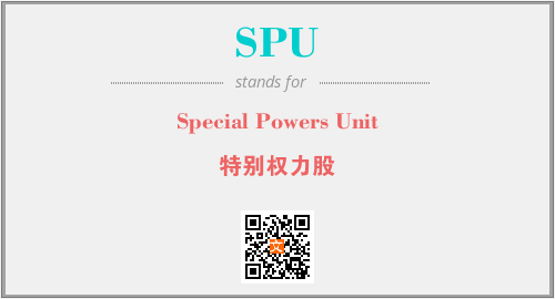 英文缩略词“SPU”经常作为“Special Powers Unit”的英文缩写来使用,中文表示:“特别权力股”。本文将详细介绍英文缩写词SPU所代表英文单词,其对应的中文拼音、详细解释以及在英语中的流行度。此外,还有关于缩略词SPU的分类、应用领域及相关应用示例等。