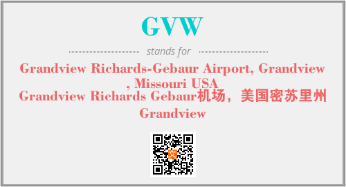 上述内容是“Grandview Richards-Gebaur Airport, Grandview, Missouri USA”作为“GVW”的缩写,解释为“Grandview Richards Gebaur机场,美国密苏里州Grandview”时的信息,以及英文缩略词GVW所代表的英文单词,其对应的中文拼音、详细解释以及在英文中的流行度和相关分类、应用领域及应用示例等。