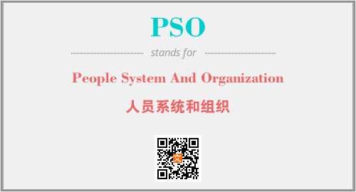 以上为People System And Organization英文缩略词PSO的中文解释,以及该英文缩写在英语的流行度、分类和应用领域方面的信息。