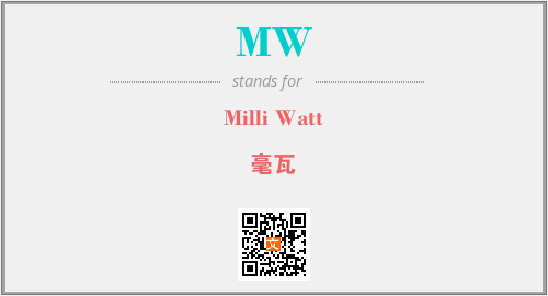 英文缩略词“MW”经常作为“Milli Watt”的英文缩写来使用,中文表示:“毫瓦”。本文将详细介绍英文缩写词MW所代表英文单词,其对应的中文拼音、详细解释以及在英语中的流行度。此外,还有关于缩略词MW的分类、应用领域及相关应用示例等。