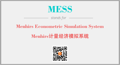 上述内容是“Menhirs Econometric Simulation System”作为“MESS”的缩写,解释为“Menhirs计量经济模拟系统”时的信息,以及英文缩略词MESS所代表的英文单词,其对应的中文拼音、详细解释以及在英文中的流行度和相关分类、应用领域及应用示例等。