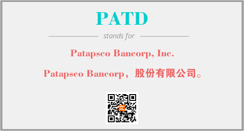 上述内容是“Patapsco Bancorp, Inc.”作为“PATD”的缩写,解释为“Patapsco Bancorp,股份有限公司。”时的信息,以及英文缩略词PATD所代表的英文单词,其对应的中文拼音、详细解释以及在英文中的流行度和相关分类、应用领域及应用示例等。