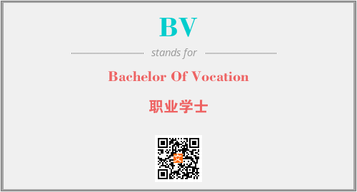 上述内容是“Bachelor Of Vocation”作为“BV”的缩写,解释为“职业学士”时的信息,以及英文缩略词BV所代表的英文单词,其对应的中文拼音、详细解释以及在英文中的流行度和相关分类、应用领域及应用示例等。