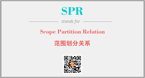上述内容是“Scope Partition Relation”作为“SPR”的缩写,解释为“范围划分关系”时的信息,以及英文缩略词SPR所代表的英文单词,其对应的中文拼音、详细解释以及在英文中的流行度和相关分类、应用领域及应用示例等。