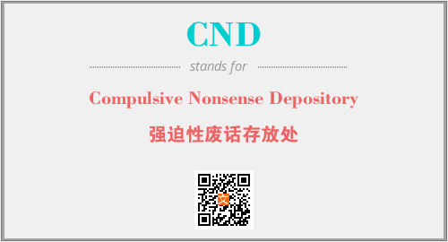 以上为Compulsive Nonsense Depository英文缩略词CND的中文解释,以及该英文缩写在英语的流行度、分类和应用领域方面的信息。
