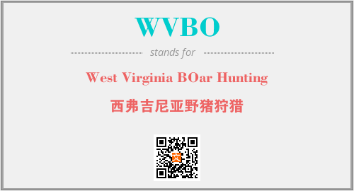 英文缩略词“WVBO”经常作为“West Virginia BOar Hunting”的英文缩写来使用,中文表示:“西弗吉尼亚野猪狩猎”。本文将详细介绍英文缩写词WVBO所代表英文单词,其对应的中文拼音、详细解释以及在英语中的流行度。此外,还有关于缩略词WVBO的分类、应用领域及相关应用示例等。