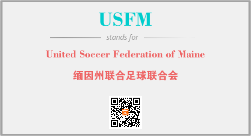 上述内容是“United Soccer Federation of Maine”作为“USFM”的缩写,解释为“缅因州联合足球联合会”时的信息,以及英文缩略词USFM所代表的英文单词,其对应的中文拼音、详细解释以及在英文中的流行度和相关分类、应用领域及应用示例等。