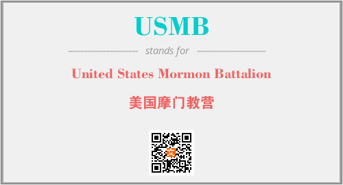 英文缩略词“USMB”经常作为“United States Mormon Battalion”的英文缩写来使用,中文表示:“美国摩门教营”。本文将详细介绍英文缩写词USMB所代表英文单词,其对应的中文拼音、详细解释以及在英语中的流行度。此外,还有关于缩略词USMB的分类、应用领域及相关应用示例等。