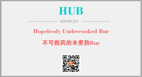 英文缩略词“HUB”经常作为“Hopelessly Undercooked Bur”的英文缩写来使用,中文表示:“不可救药的未煮熟Bur”。本文将详细介绍英文缩写词HUB所代表英文单词,其对应的中文拼音、详细解释以及在英语中的流行度。此外,还有关于缩略词HUB的分类、应用领域及相关应用示例等。