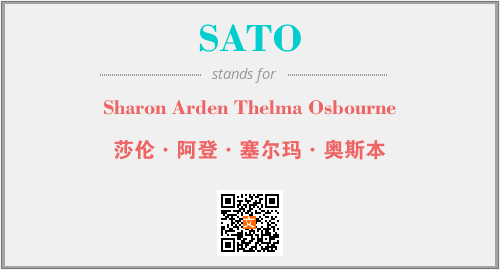 上述内容是“Sharon Arden Thelma Osbourne”作为“SATO”的缩写,解释为“莎伦·阿登·塞尔玛·奥斯本”时的信息,以及英文缩略词SATO所代表的英文单词,其对应的中文拼音、详细解释以及在英文中的流行度和相关分类、应用领域及应用示例等。