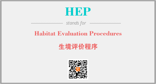 上述内容是“Habitat Evaluation Procedures”作为“HEP”的缩写,解释为“生境评价程序”时的信息,以及英文缩略词HEP所代表的英文单词,其对应的中文拼音、详细解释以及在英文中的流行度和相关分类、应用领域及应用示例等。