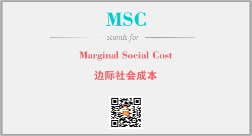 上述内容是“Marginal Social Cost”作为“MSC”的缩写,解释为“边际社会成本”时的信息,以及英文缩略词MSC所代表的英文单词,其对应的中文拼音、详细解释以及在英文中的流行度和相关分类、应用领域及应用示例等。