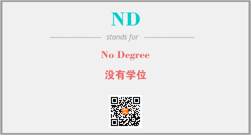 英文缩略词“ND”经常作为“No Degree”的英文缩写来使用,中文表示:“没有学位”。本文将详细介绍英文缩写词ND所代表英文单词,其对应的中文拼音、详细解释以及在英语中的流行度。此外,还有关于缩略词ND的分类、应用领域及相关应用示例等。