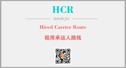 上述内容是“Hired Carrier Route”作为“HCR”的缩写,解释为“租用承运人路线”时的信息,以及英文缩略词HCR所代表的英文单词,其对应的中文拼音、详细解释以及在英文中的流行度和相关分类、应用领域及应用示例等。