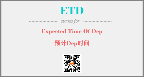 上述内容是“Expected Time Of Dep”作为“ETD”的缩写,解释为“预计Dep时间”时的信息,以及英文缩略词ETD所代表的英文单词,其对应的中文拼音、详细解释以及在英文中的流行度和相关分类、应用领域及应用示例等。