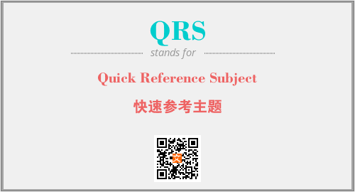 英文缩略词“QRS”经常作为“Quick Reference Subject”的英文缩写来使用,中文表示:“快速参考主题”。本文将详细介绍英文缩写词QRS所代表英文单词,其对应的中文拼音、详细解释以及在英语中的流行度。此外,还有关于缩略词QRS的分类、应用领域及相关应用示例等。