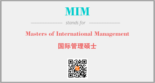 英文缩略词“MIM”经常作为“Masters of International Management”的英文缩写来使用,中文表示:“国际管理硕士”。本文将详细介绍英文缩写词MIM所代表英文单词,其对应的中文拼音、详细解释以及在英语中的流行度。此外,还有关于缩略词MIM的分类、应用领域及相关应用示例等。