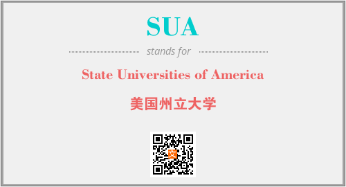 英文缩略词“SUA”经常作为“State Universities of America”的英文缩写来使用,中文表示:“美国州立大学”。本文将详细介绍英文缩写词SUA所代表英文单词,其对应的中文拼音、详细解释以及在英语中的流行度。此外,还有关于缩略词SUA的分类、应用领域及相关应用示例等。