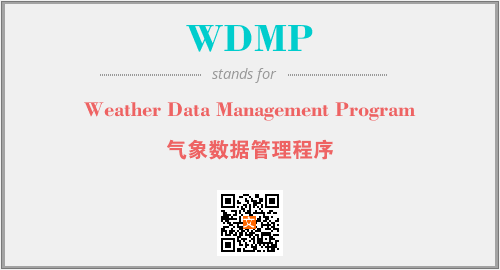 英文缩略词“WDMP”经常作为“Weather Data Management Program”的英文缩写来使用,中文表示:“气象数据管理程序”。本文将详细介绍英文缩写词WDMP所代表英文单词,其对应的中文拼音、详细解释以及在英语中的流行度。此外,还有关于缩略词WDMP的分类、应用领域及相关应用示例等。
