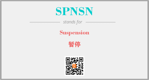 英文缩略词“SPNSN”经常作为“Suspension”的英文缩写来使用,中文表示:“暂停”。本文将详细介绍英文缩写词SPNSN所代表英文单词,其对应的中文拼音、详细解释以及在英语中的流行度。此外,还有关于缩略词SPNSN的分类、应用领域及相关应用示例等。