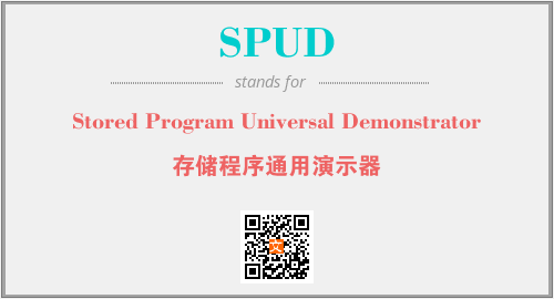英文缩略词“SPUD”经常作为“Stored Program Universal Demonstrator”的英文缩写来使用,中文表示:“存储程序通用演示器”。本文将详细介绍英文缩写词SPUD所代表英文单词,其对应的中文拼音、详细解释以及在英语中的流行度。此外,还有关于缩略词SPUD的分类、应用领域及相关应用示例等。