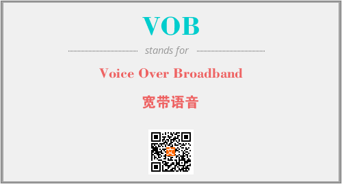 英文缩略词“VOB”经常作为“Voice Over Broadband”的英文缩写来使用,中文表示:“宽带语音”。本文将详细介绍英文缩写词VOB所代表英文单词,其对应的中文拼音、详细解释以及在英语中的流行度。此外,还有关于缩略词VOB的分类、应用领域及相关应用示例等。