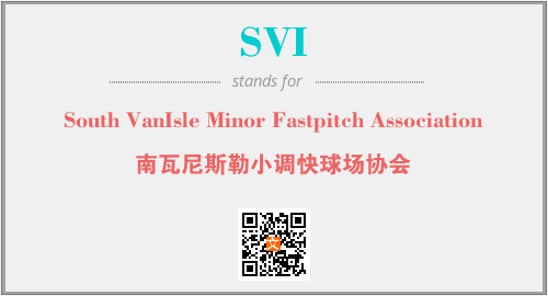 英文缩略词“SVI”经常作为“South VanIsle Minor Fastpitch Association”的英文缩写来使用,中文表示:“南瓦尼斯勒小调快球场协会”。本文将详细介绍英文缩写词SVI所代表英文单词,其对应的中文拼音、详细解释以及在英语中的流行度。此外,还有关于缩略词SVI的分类、应用领域及相关应用示例等。