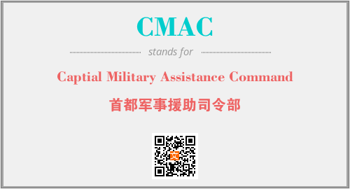 英文缩略词“CMAC”经常作为“Captial Military Assistance Command”的英文缩写来使用,中文表示:“首都军事援助司令部”。本文将详细介绍英文缩写词CMAC所代表英文单词,其对应的中文拼音、详细解释以及在英语中的流行度。此外,还有关于缩略词CMAC的分类、应用领域及相关应用示例等。