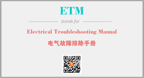 上述内容是“Electrical Troubleshooting Manual”作为“ETM”的缩写,解释为“电气故障排除手册”时的信息,以及英文缩略词ETM所代表的英文单词,其对应的中文拼音、详细解释以及在英文中的流行度和相关分类、应用领域及应用示例等。