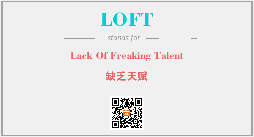 以上为Lack Of Freaking Talent英文缩略词LOFT的中文解释,以及该英文缩写在英语的流行度、分类和应用领域方面的信息。