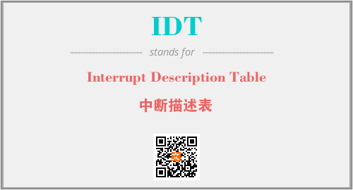 英文缩略词“IDT”经常作为“Interrupt Description Table”的英文缩写来使用,中文表示:“中断描述表”。本文将详细介绍英文缩写词IDT所代表英文单词,其对应的中文拼音、详细解释以及在英语中的流行度。此外,还有关于缩略词IDT的分类、应用领域及相关应用示例等。