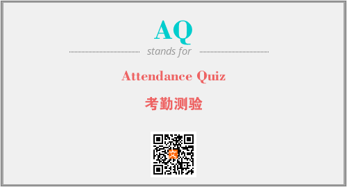 英文缩略词“AQ”经常作为“Attendance Quiz”的英文缩写来使用,中文表示:“考勤测验”。本文将详细介绍英文缩写词AQ所代表英文单词,其对应的中文拼音、详细解释以及在英语中的流行度。此外,还有关于缩略词AQ的分类、应用领域及相关应用示例等。